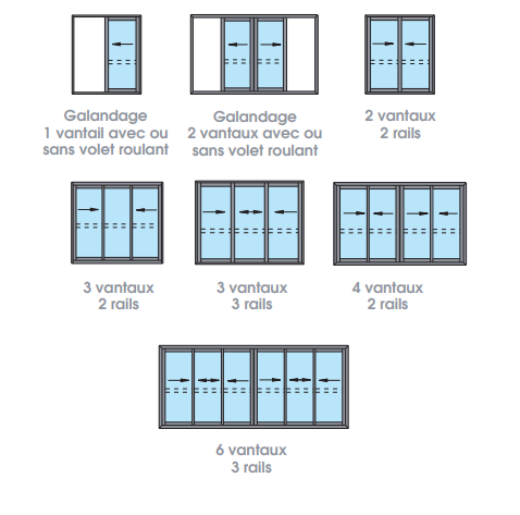 Cette gamme offre des possibilités de combinaisons multiples permettant de réaliser des coulissants de 2, 3, 4 ou 6 vantaux. Elle permet également de réaliser des coulissants à galandage pour une discrétion et une ouverture maximale. Ces coulissants peuvent s'intégrer dans la gamme Espace 50.